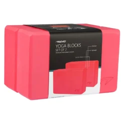 Set of 2 sturdy, lightweight yoga blocks with rounded corners and sides for proper grip and optimal comfort.