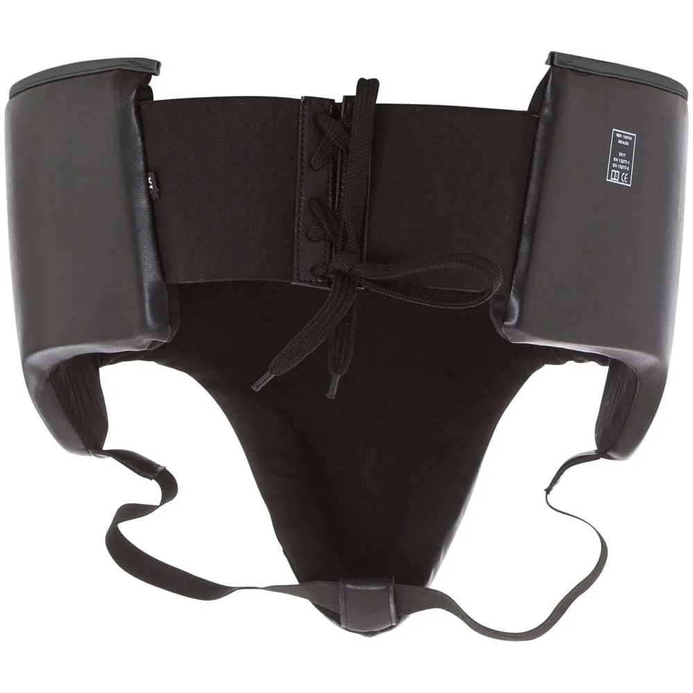 The professional groin guard LUCCA for men made of artificial leather/PU ensures a high wearing comfort. The built-in cup designed from impact-resistant plastic for training and competition prevents injuries from punches below the belt line. The wide padding that extends to the back panel protects also the hips against lower punches. Best wearing comfort and individual fitting due to elastic straps and extra wide elastic-velcro closure.