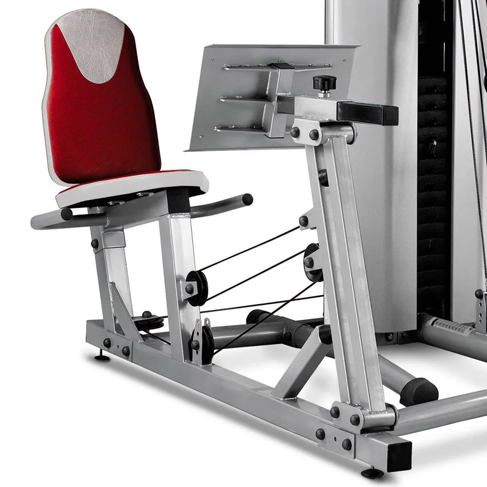 Combines the multi-station with the seated leg press and the flexor abdominal with dip.