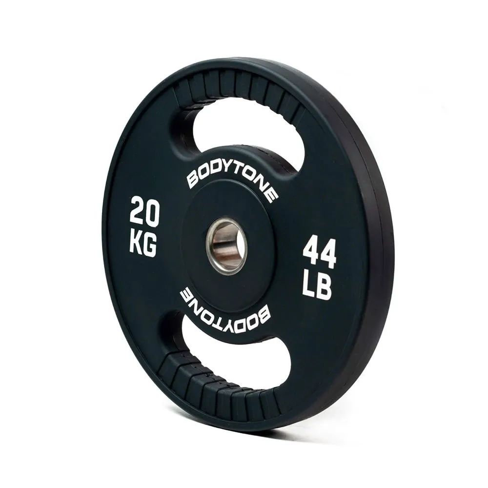 Black.Looking for high-quality Olympic plates that can help you take your bodybuilding workouts to the next level? Look no further than the BODYTONE Urethane Olympic Plate 20kg Black! These plates are made with durable, lightweight urethane that provides excellent grip and reduces the likelihood of damage to your floors or equipment. Each plate also features a precision-milled center hole and consistent diameter across all sizes, ensuring a snug, secure fit on any standard Olympic barbell. With a versatile black finish and an impressive weight of 20kg, these plates are sure to help you reach your goals faster and more efficiently than ever before. So why wait? Invest in the best with BODYTONE Urethane Olympic Plate 20kg Black – the ultimate in bodybuilding equipment, bars, and weights!
