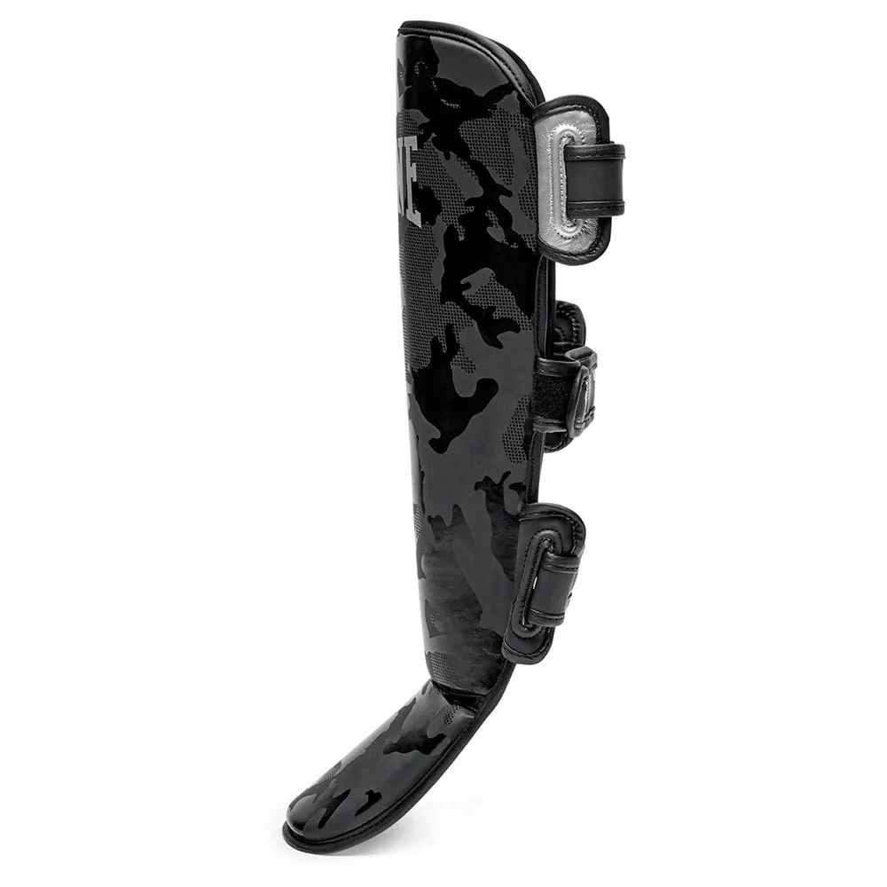 The Camoblack shin guards are elegant and sophisticated, the camouflage detail of the black glossy print on a matte base is enriched with silver details.