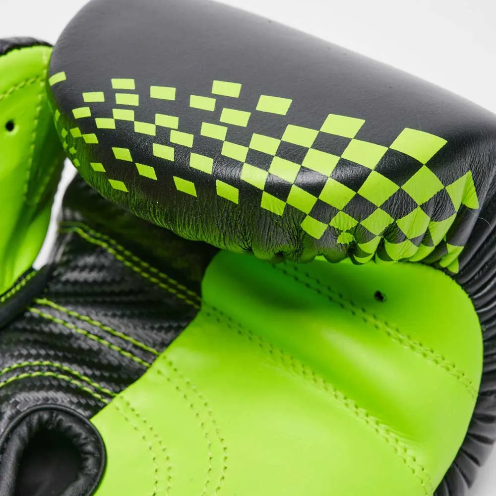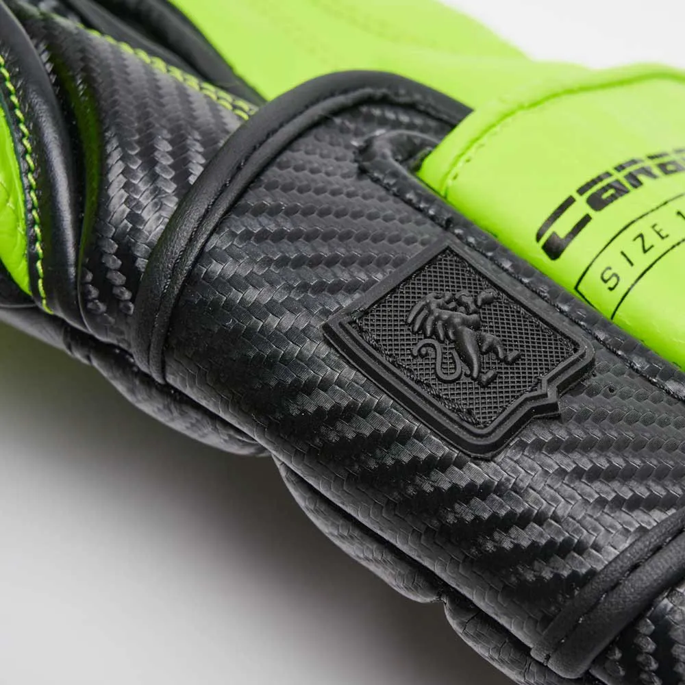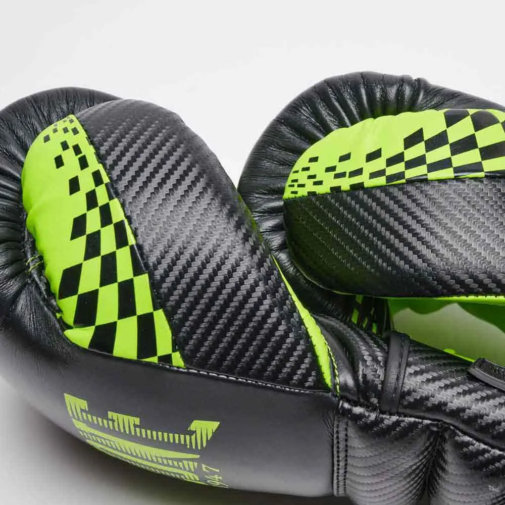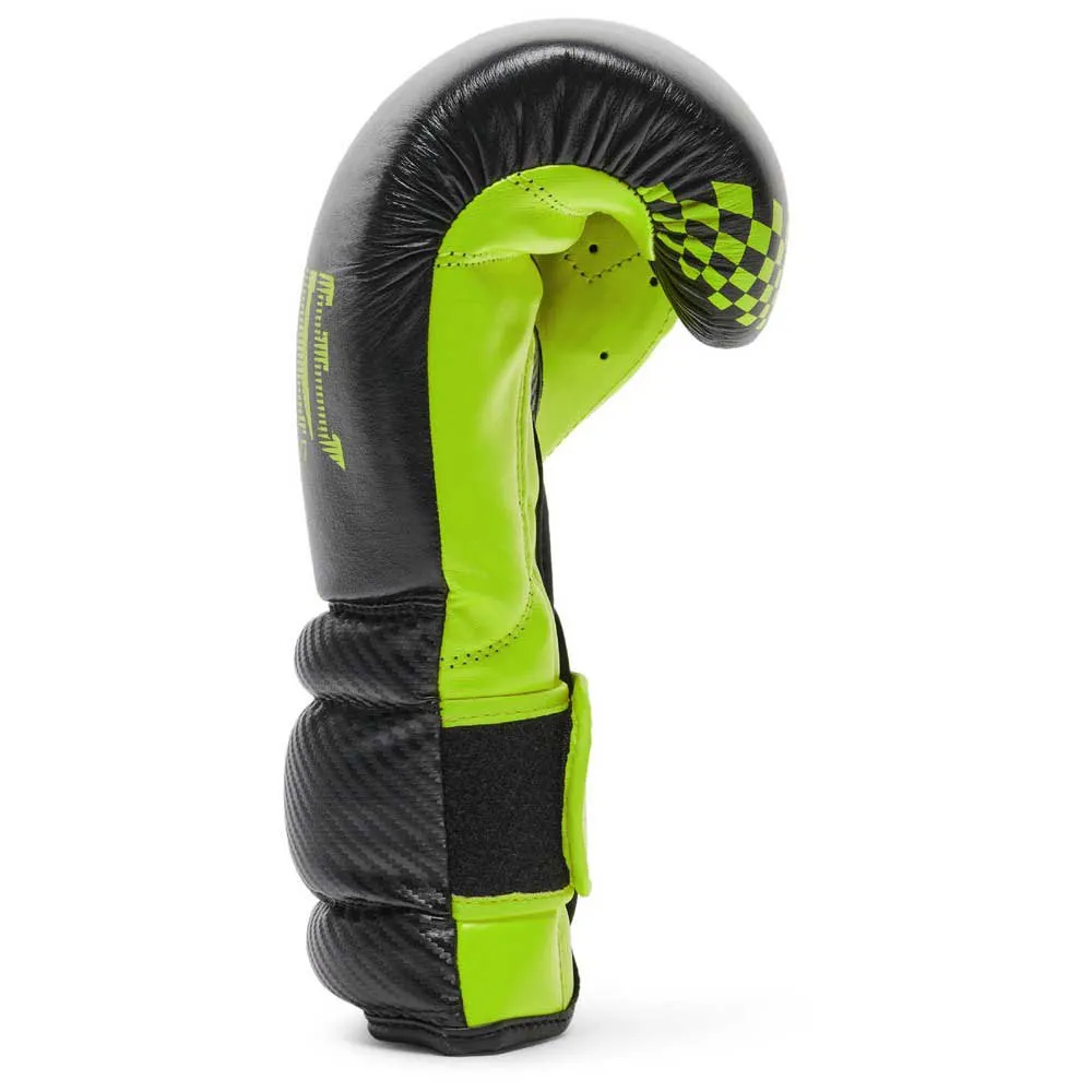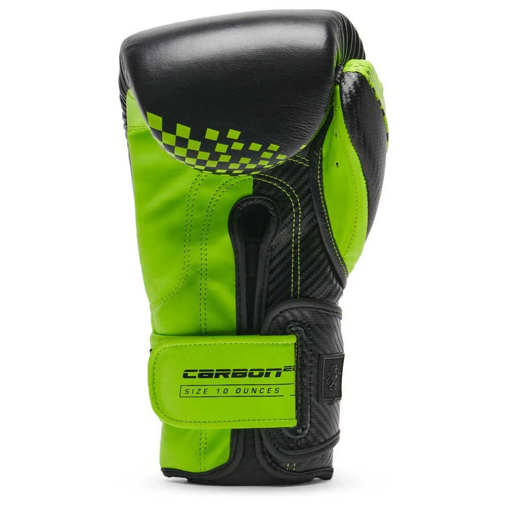 Gritty and flashy, Carbon22 glove brings with it the innovation ofa tripartite and well padded cuff with elero clasure. Per- fect for all martial arts, it has a leather