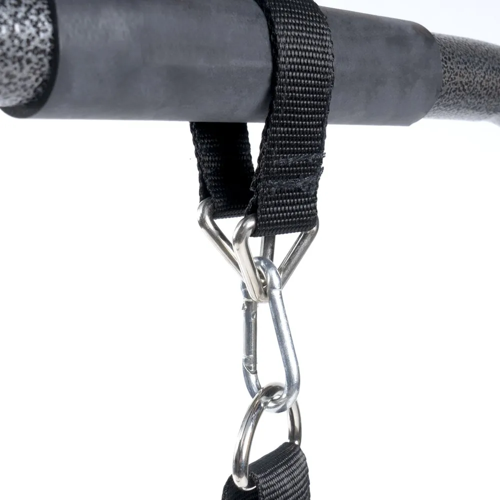 Features: with the help of the parallel bars, you can easily perform exercises such as dips or leg lifts. The suspension straps allow for an effective workout of the entire body. This way, you can do push-ups, sit-ups, crunches, etc. The parallel bars are made of very strong steel tubing for high strength and durability.