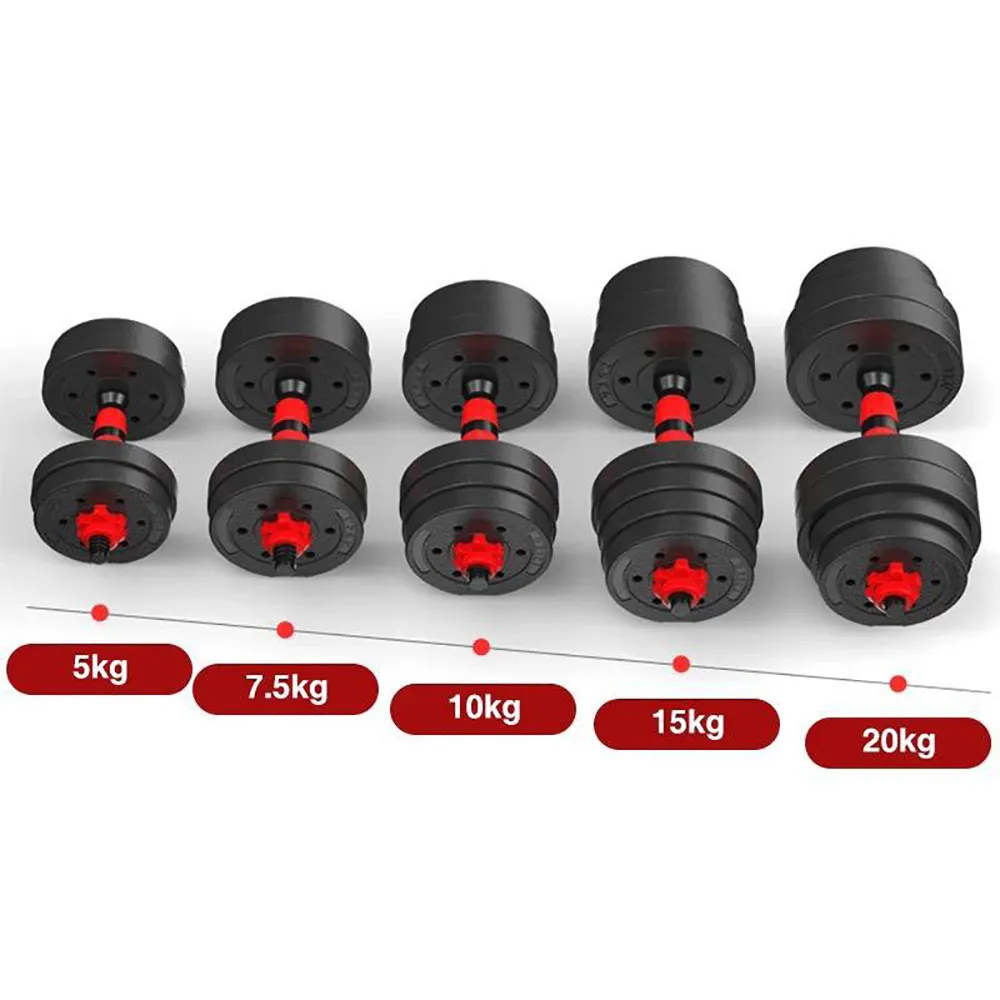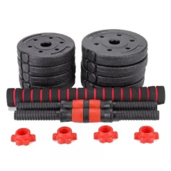 The dumbbell game is available in several options with total weight between both dumbbells of 10 kg, 15 kg, 20 kg, 25 kg, 30 kg, 40 kg and 50 kg. This fitness equipment is perfect for exercises for force, for Develop and strengthen shoulders, biceps, triceps, chest or back.