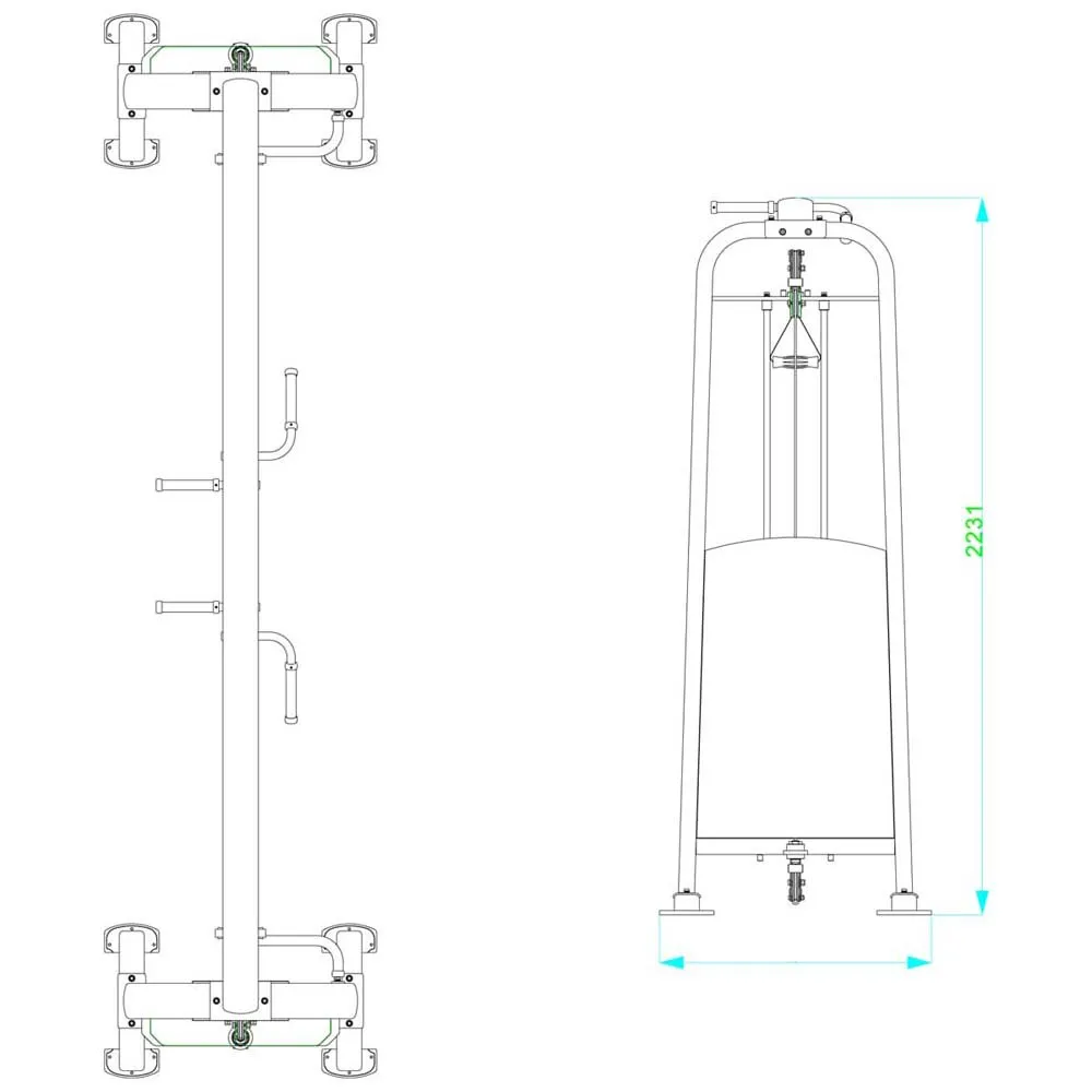 – Dimensions: 331 x 85 x 223 cm (LxWxH). 2 x 82 kg (180 lbs) precisely milled steel plates with nylon bushing.