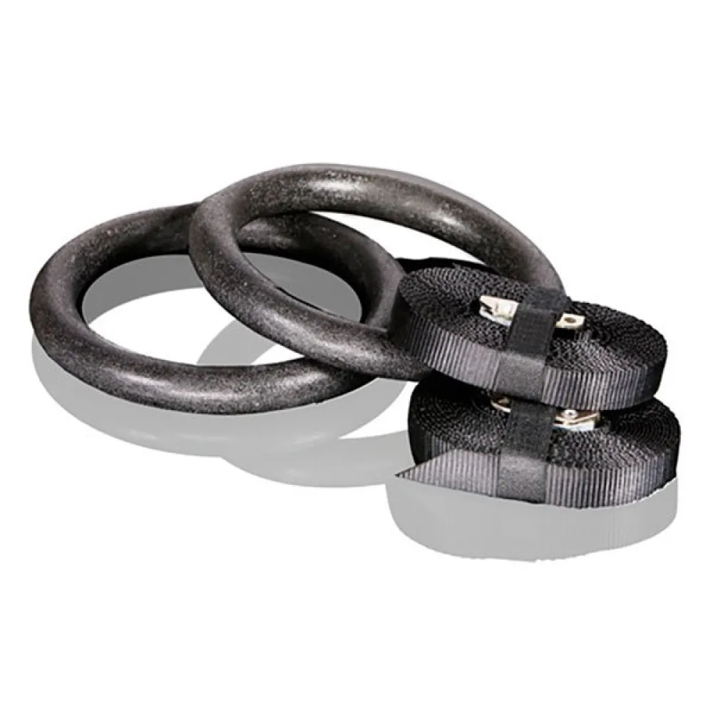The rings have a specialized textured surface for optimum grip without using chalk.