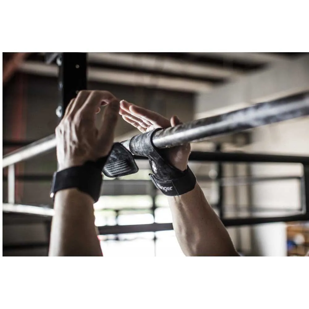 SpiderGrip™ leather palm protector with adjustable NeoTek™ cushioned lifting strap Bioform™ clay forms to the bar and secures grip Sized for best fit, grip coverage, and full finger range of motion width strap