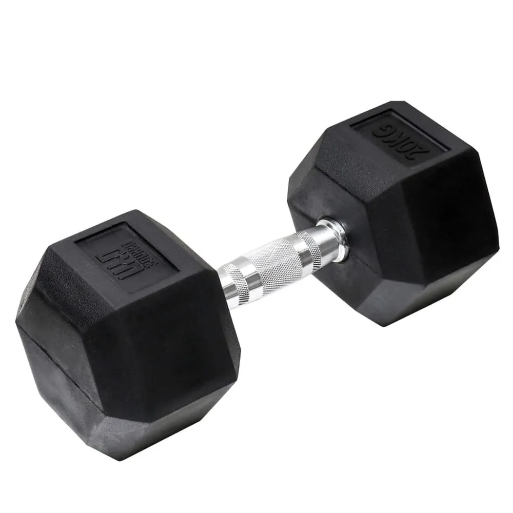 You can use the 20 kg hex dumbbells from Orange Gym for a variety of exercises such as the arms curls, the kick-backs and the dead-lifts. Train every muscle in your body! By training with free weights, you can effectively strengthen your entire body. Thanks to the combination of exercises, you can easily train every muscle in your body. The unique appearance of these dumbbells, namely the hexagonal ends, ensures that the dumbbell does not roll away during your workout. This way, you can safely use the hex dumbbells while performing push-ups. Another feature of this dumbbell set is that it has a special rubber coating. This makes it wear-resistant, and the risk of damaging the floor is minimal as well. The Orange Gym hex dumbbells are available in different weights. Whether you are a beginner or an experienced athlete, there is a suitable weight for everyone. Colour: Black Material: Coated iron and steel Dimensions: 38 x 18 x 17 cm (L x W x H) For full-body strength training Special hexagonal end Does not roll away Available in different weights With a special rubber coating Wear-resistant Delivery includes: 1 x 20 kg dumbbell