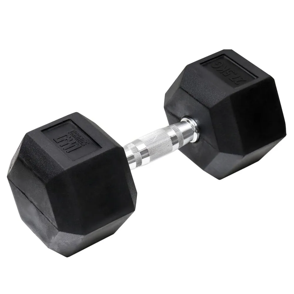 You can use the 27,5 kg hex dumbbells from Orange Gym for a variety of exercises such as the arms curls, the kick-backs and the dead-lifts. Train every muscle in your body! By training with free weights, you can effectively strengthen your entire body. Thanks to the combination of exercises, you can easily train every muscle in your body. The unique appearance of these dumbbells, namely the hexagonal ends, ensures that the dumbbell does not roll away during your workout. This way, you can safely use the hex dumbbells while performing push-ups. Another feature of this dumbbell set is that it has a special rubber coating. This makes it wear-resistant, and the risk of damaging the floor is minimal as well. The Orange Gym hex dumbbells are available in different weights. Whether you are a beginner or an experienced athlete, there is a suitable weight for everyone. Colour: Black Material: Coated iron and steel Dimensions: 40 x 20 x 19 cm (L x W x H) For full-body strength training Special hexagonal end Does not roll away Available in different weights With a special rubber coating Wear-resistant Delivery includes: 27,5 kg dumbbell