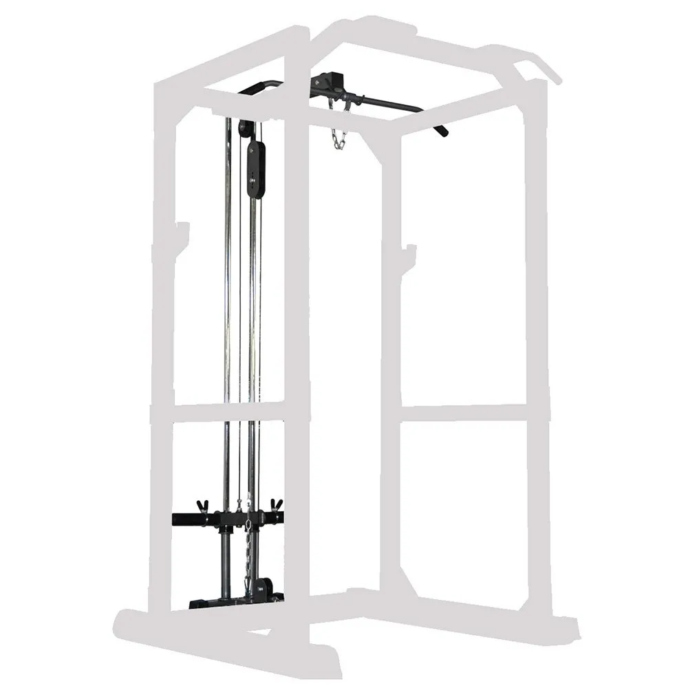 The Disc Loading Lat/Low Pulley Attachment fits the Heavy Duty Power Rack.