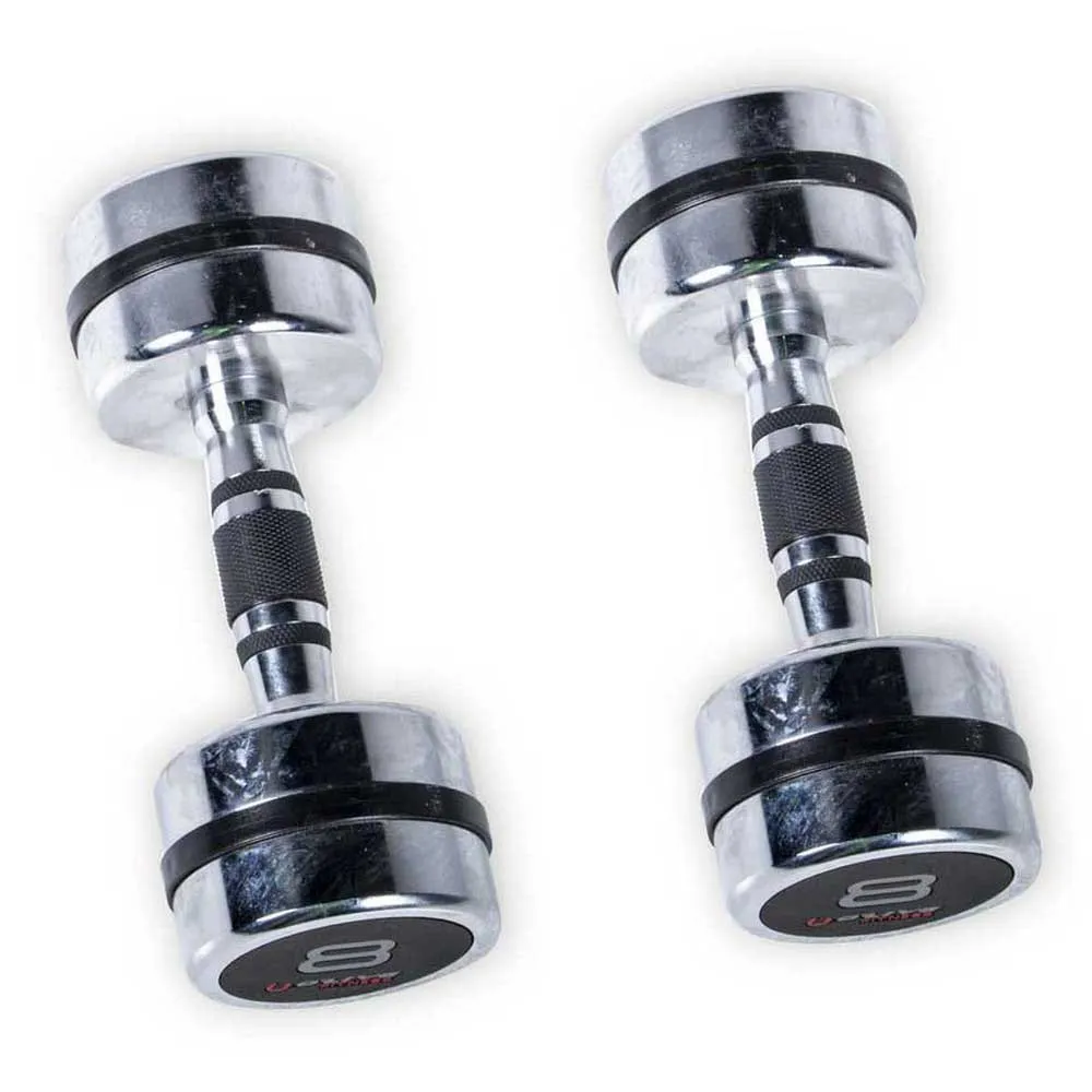 Coated with quality chrome with polyurethane rings in the heads and in the handle to prevent premature wear and for easy grip. The indication of the weight on the side is in color and oversized. Sold in pairs.