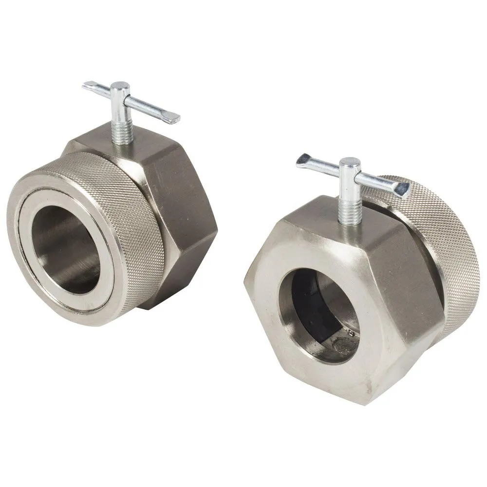 The competition clamps are designed for Olympic bars of 50 mm diameter sleeves. With a weight of 2.5 kg each unit, they provide a fast fixing and a strong attachment to ensure that the disks are subject during the most intense lifts. Sold in pairs.