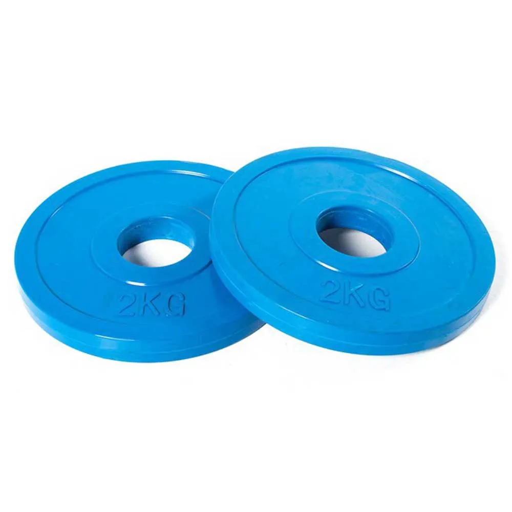 They are made from cast-iron and coated in brightly coloured rubber in the traditional Olympic colours. The rubber provides an added degree of protection. Sold in pairs