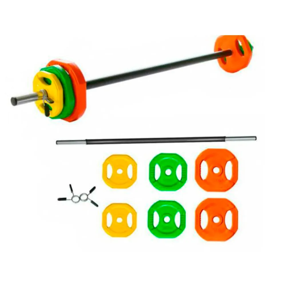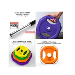 Enjoy this Pump weight set. The dumbbells, according to their weight, have different colors to facilitate that you can identify them at the same time as its octagonal shape to avoid wheel. Its gummy finish is soft and pleasant to the touch, will avoid flashing surface formation in your hands by continued use.