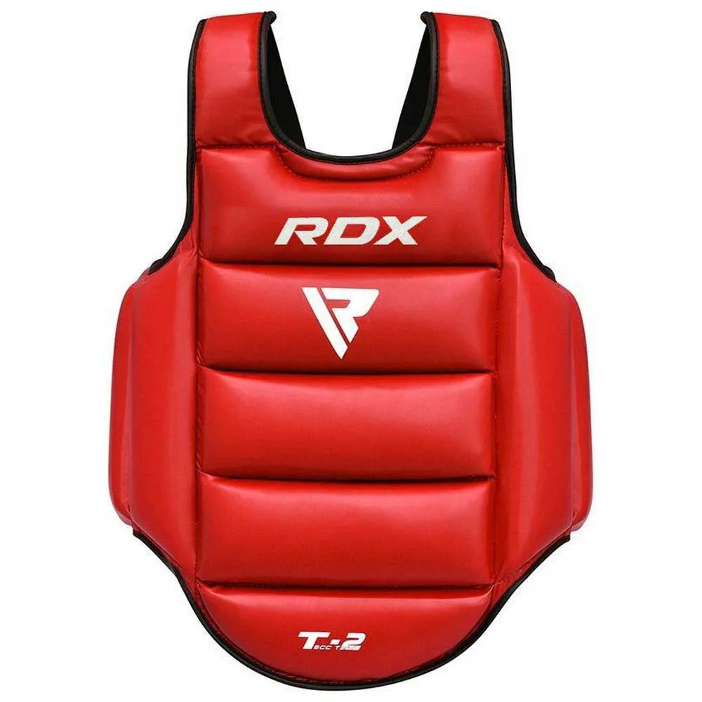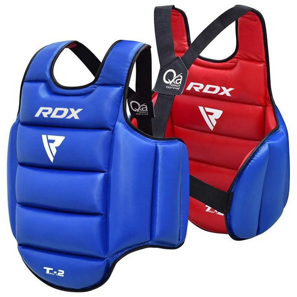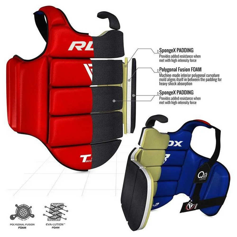 Bringing innovation and tradition together. RDX’s latest double-sided Taekwondo chest protector is designed to integrate the hi-tech shock-absorbency of the modern world into the classically powerful kick based martial art of TKD. Maya Hide leather is patented and scientifically sound in combating wear and tear. Super-compressed laminated padding with foam results in an agile, durable and long-lasting chest guard protector that is unbreakable and will stand against anything you throw at it.(Double-sided)