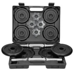 The high-quality dumbbells from ECD Germany are optimal for your workout at home. Consisting of different weights, the dumbbells are suitable for beginners and advanced users, you can adjust the training intensity individually to your needs. Thanks to the ribbed grip surfaces and the star locks with sealing ring, you train safely and comfortably. The dumbbells are delivered in a system case which stores all parts space-saving and safe and facilitates the transport. The dumbbells are corrosion-resistant and allow a lifetime use.