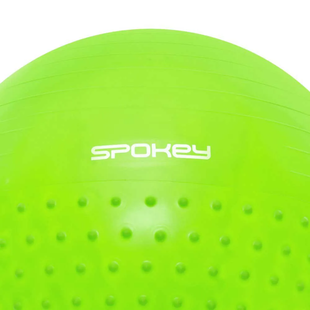 Parameters:- anti-burst system – if the ball is punctured the air is released slowly – a half of a ball with a smooth surface, the other half – with protrusions massaging the body and stimulating blood circulation – diameter:65 cm – maximum weight of user:200 kg – material:pvc – pump in a set.