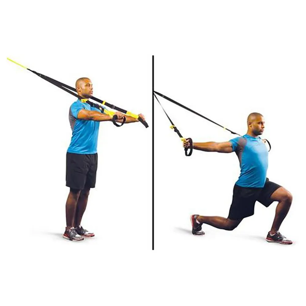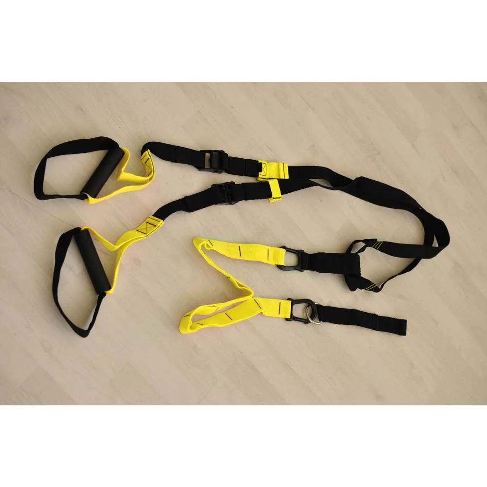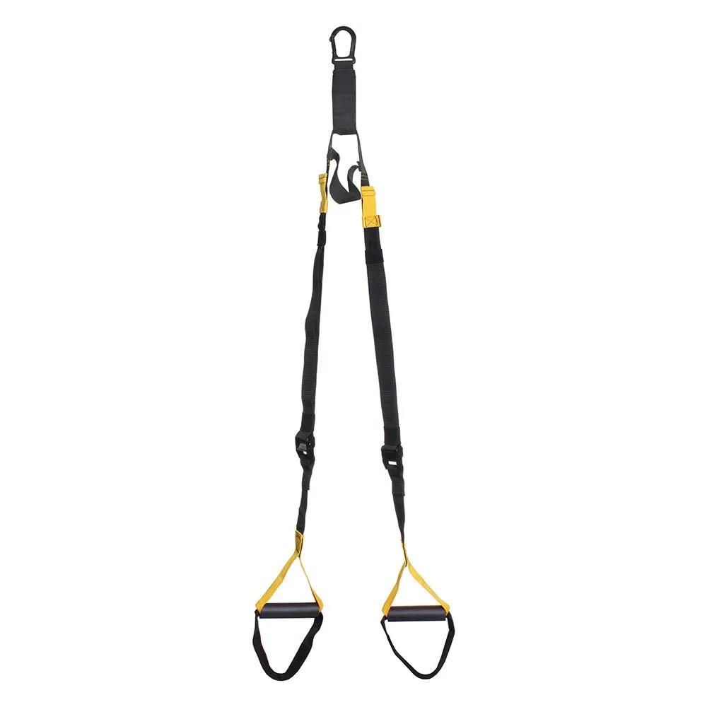 Innovative system of heavy duty nylon suspension training straps supporting various strength and balance exercises. Highly resistant steel carabiners with aluminium height adjustment mechanism. Suitable for indoor and outdoor use by simply fixing to strong structure for ease of training. Transport bag included.
