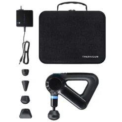 – Elite Smart Percussive Therapy Device, Protective Carrying Case, 5 Attachments, Power Adapter