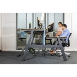 – Ergonomically shaped pedals that, thanks to the unique flat movement, make it possible to train under a standard desk without bending the knees. This distinguishes this desk bike from many others
