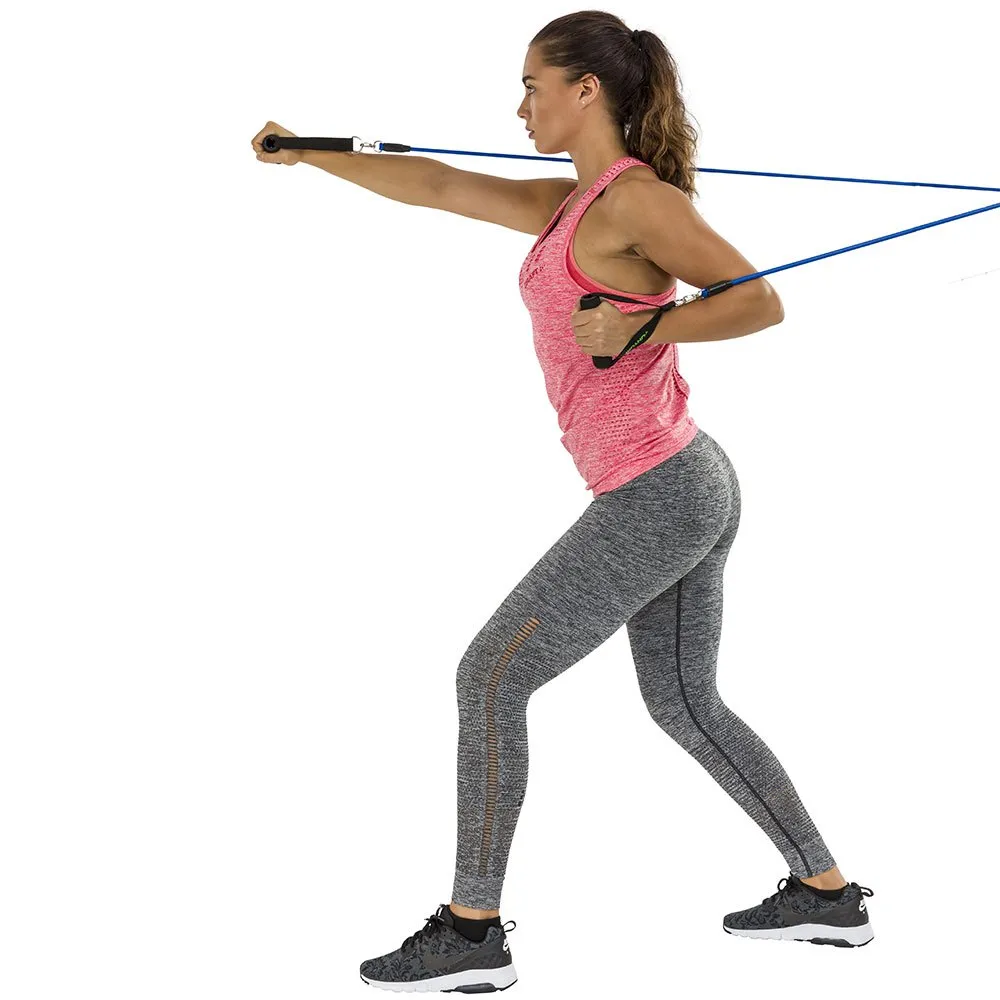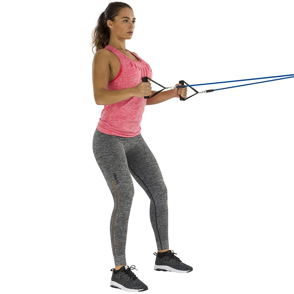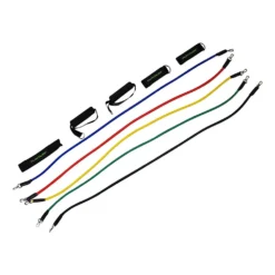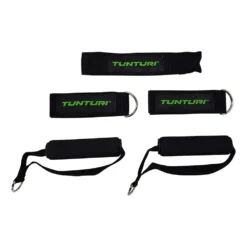 The Tunturi collection has this Multifunction Resistance Tubing Set with 5 different resistance straps, 2 anklets, 2 handles and a door anchor.