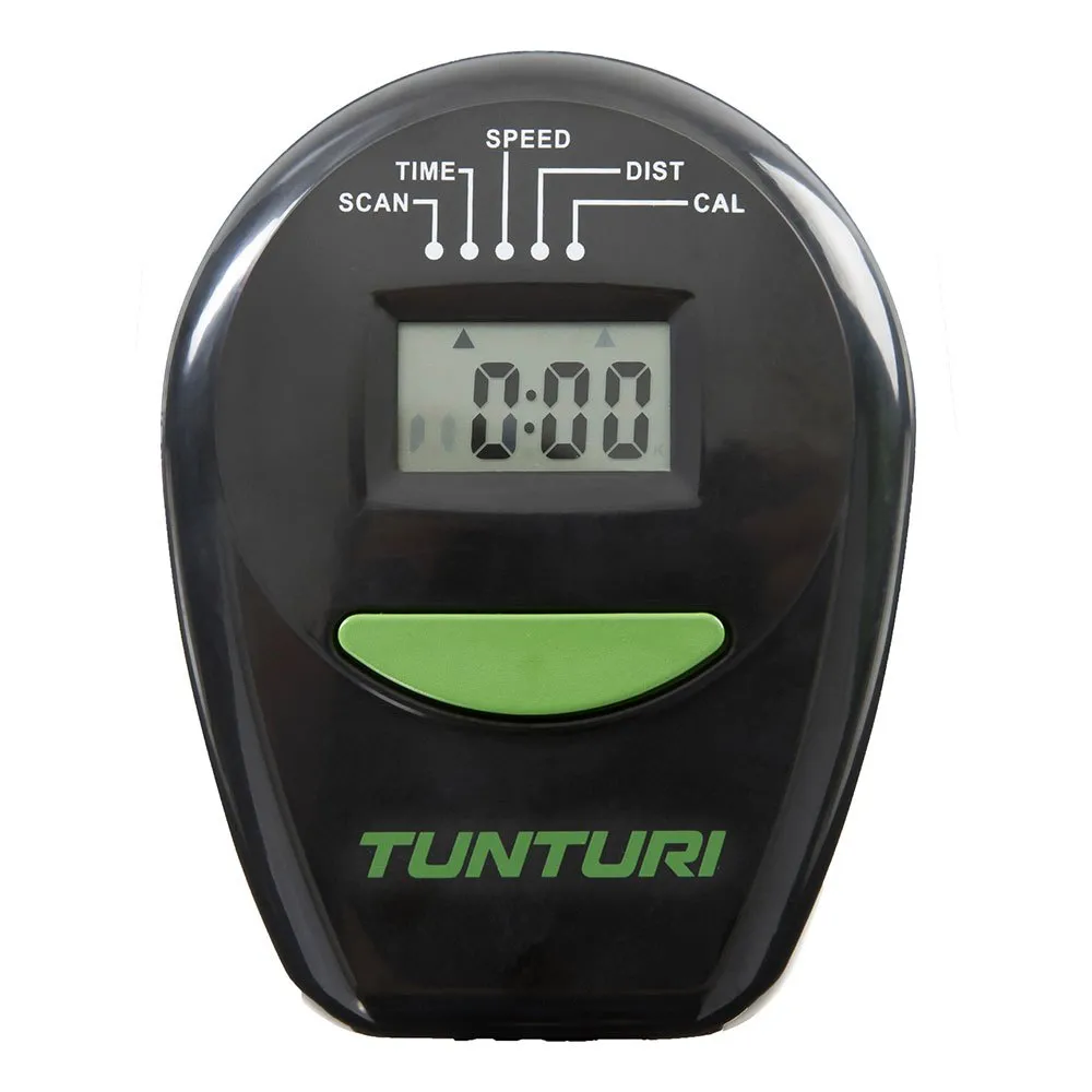 The display shows you the main parameters:speed, distance, time, revolutions and calories burnt.