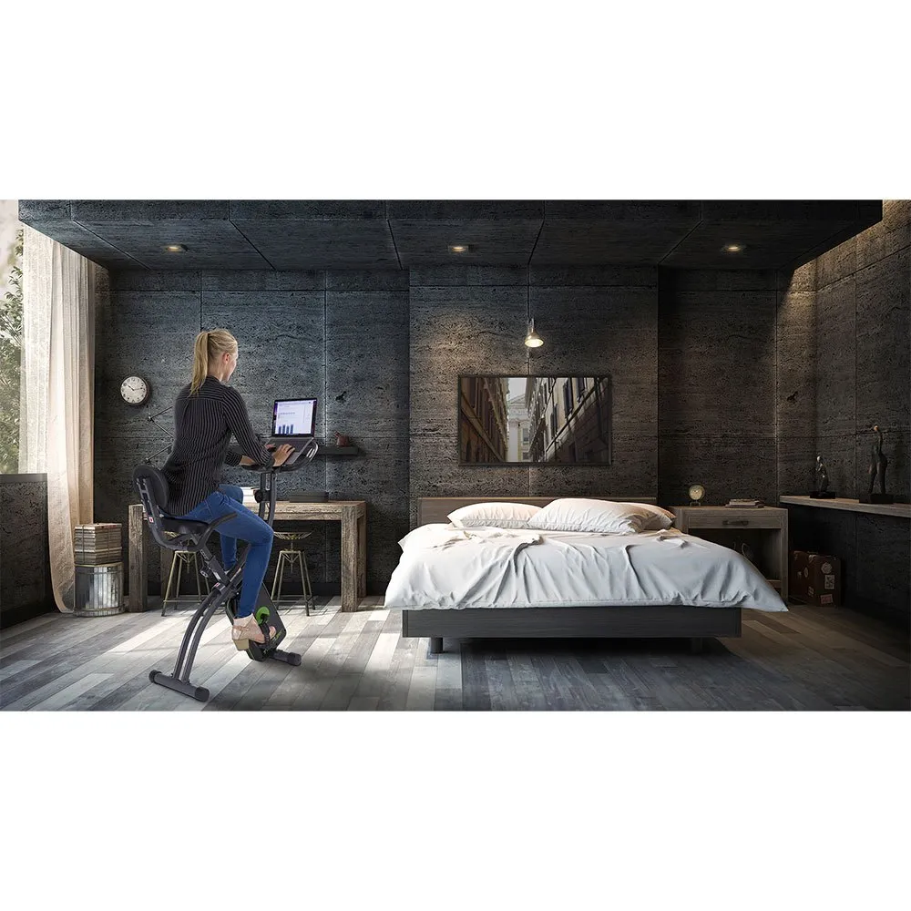 The folding mechanism and the transport wheels turn this exercise bike into a small machine that easily fits into the closet or under the bed.
