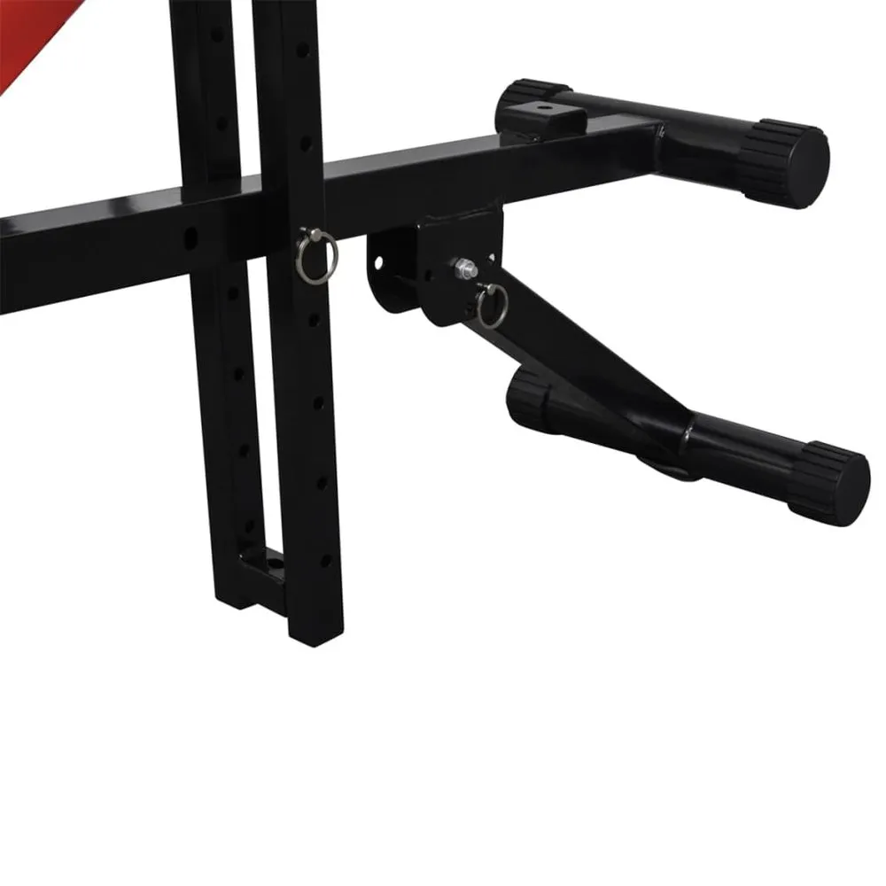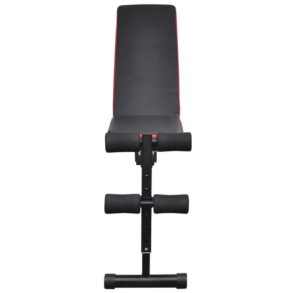 This high-quality, multifunctional sit-up bench, equipped with an adjustable seat and a backrest, is a great choice for people who like exercising at home. The bench is delivered with a barbell and dumbbell set. The backrest supports your back and shoulders, while the leg curl trains your thighs and legs. This multi-functional fitness workout bench allows for an effective, total body workout. Equipped with many adjustable knobs, the bench provides you with a great range of adjustment angles and heights; it, therefore, allows you to choose your desired position. The thick, padded seat is very comfortable, while the heavy-duty steel frame makes the bench stable and durable. The barbell and dumbbell set features solid chrome-plated bars with quick-action spring collars (for barbell bar), non-slip grips, and fluted star-screw caps (for dumbbell bars) for secure attachment of the weight plates. You can work out without worrying about safety issues. The weight plates are made with a robust polyethylene casing. They can be combined in various ways for different training purposes. Delivery includes a sit-up bench, a barbell bar, two dumbbell bars, six 1,25 kg weight plates, four 2,5 kg weight plates, two 5 kg weight plates, four caps and two spring collars. Sit-up bench: Colour: Black and red Frame material: Steel Dimensions: 125 x 35 x 50 cm (L x W x H) Cushion thickness: 4 cm Net weight: 12 kg Maximum user weight: 150 kg The seat cushion has 3 adjustable settings The back support plate has 8 adjustable settings Barbell and dumbbell set: Weight plates with polyethylene casing Grip size: approximately 14,5 cm (barbell), 10 cm (dumbbell) 1 x 2 kg barbell bar: 2,5 x 140 cm (Diameter x L) 2 x 0,5 kg dumbbell bar: 2,5 x 45 cm (Diameter x L) 6 x 1,25 kg weight plate: 17,5 x 3 cm (Diameter x T) 4 x 2,5 kg weight plate: 22 x 4 cm (Diameter x T) 2 x 5 kg weight plate: 27 x 4,5 cm (Diameter x T) 4 x Cap 2 x Spring collar Total weight including bars: 30,5 kg Total weight of plates: 27,5 kg