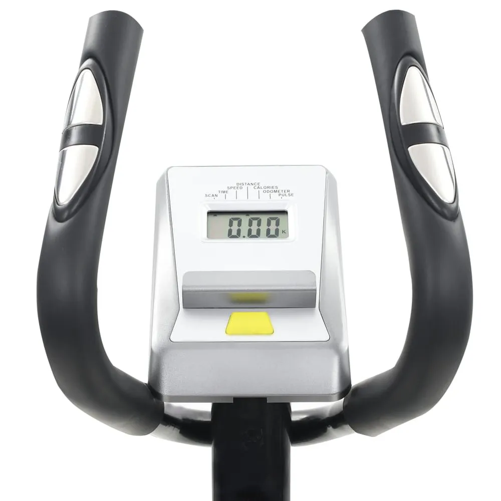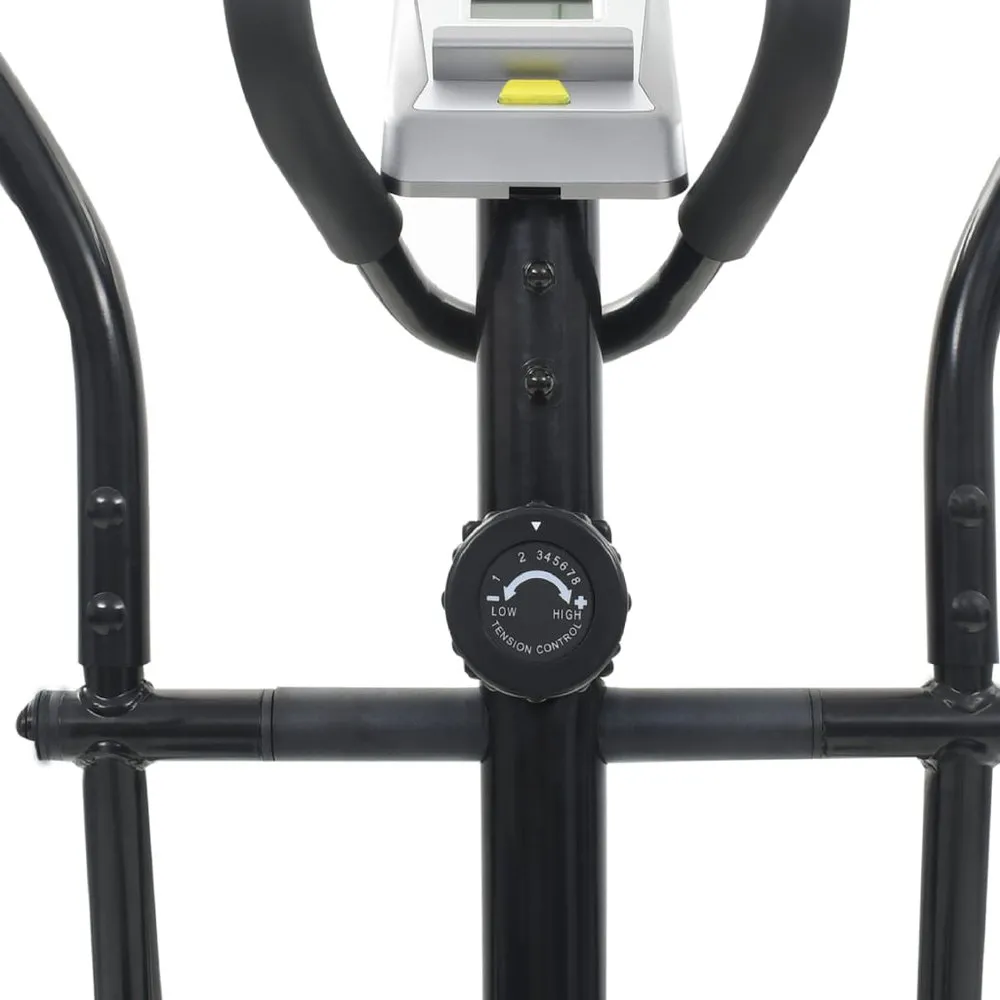 This robust magnetic elliptical trainer will be a great choice for exercising at home. Equipped with a flywheel, 8 manually-controlled intensity settings, and an LCD computer display, this cross trainer is sure to give you an efficient workout. You can monitor your performance on the LCD display, which shows information about the elapsed time, current speed, distance, calories burned, odometer and pulse. The computer display has a tablet holder so you can use your tablet or watch a movie during your workout. The hometrainer is ergonomically designed. Its two handles provide you with sufficient scope for an optimal walking position and offer an extra upper body workout at the same time. The large, non-skid foot pedals ensure an optimal power transfer from your feet to the pedals. The magnetic brake system and precision-balanced flywheel are frictionless for a smooth, quiet, and maintenance-free operation. The transport rollers in the base make it easy to move the fitness bike around. The cardio equippment needs to be assembled. Colour: Grey and yellow Material: Metal and plastic Dimensions: 105 x 59 x 153 cm (L x W x H) Total weight: 23,5 kg Rotating mass: 10 kg Maximum user weight: 100 kg Brake system: Magnet Drive system: Ribbed belt, bidirectional 8 intensity levels, manually controlled With transport rollers in the base Functions of the LCD computer: Scan, time, speed, distance, calories, odometer, pulse With 2 AAA batteries Easy assembly