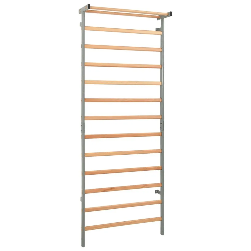 With fine craftsmanship and compact design, this ladder may be installed against the wall tightly and save much space. It provides many exercise choices, such as crunches, muscle stretches, etc. Made of solid rubberwood and iron, this wall rack gives you strong support with the maximum weight capacity up to 40 kg. The delivery also includes a wall attachment device. Colour: Light brown and grey