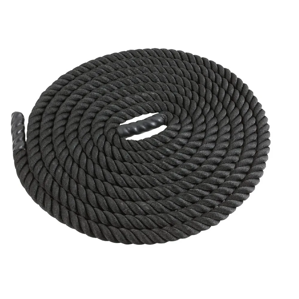 The wave rope is ideal for high intensity cardio/muscular training. Can be used indoors and outdoors. Protective tape at the ends. Nylon rope. It is strongly recommended to put a protective tape at the point of contact with the support to reduce abrasion. 10m rope – Ø : 3,8 cm 10m rope diameter 2,6 cm available under reference 044111 and fixing hook under reference 044112.